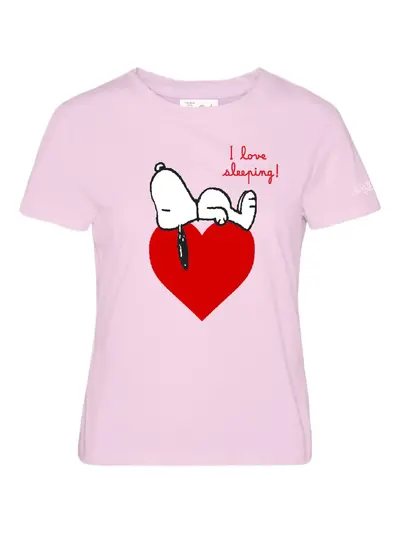 pink Snoopy motif heart print short sleeves crew neck