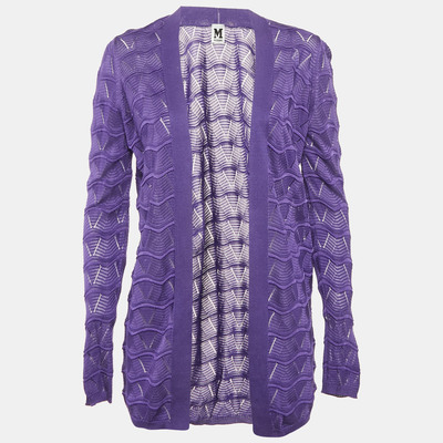 Infused with Missoni’s iconic knitwork, this purple open front cardigan features a bold chevron pattern. Relaxed and richly textured, it lends visual depth to minimalist ensembles.