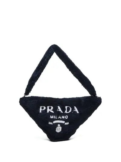 circa 2000-2020s black terry-cloth effect triangle shape single shoulder strap embroidered logo detail Condition: GOOD. This previously owned and used item is in good condition with minimal signs of use. This may include fading of material or plating and scratches.