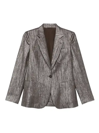 chocolate brown metallic effect single-breasted closure notched lapel long sleeves welt pockets