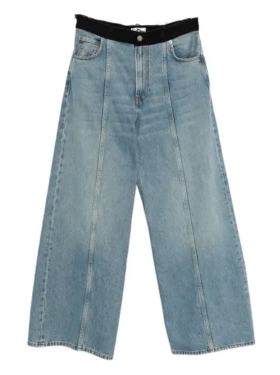 blue concealed front button, hook and zip fastening belt loops classic five pockets straight hem