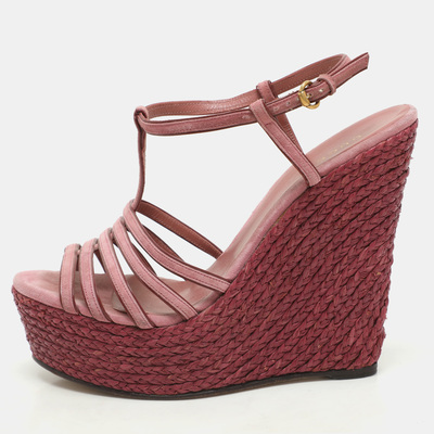 Gucci Pink Suede Strappy Wedge Espadrille Ankle Strap Sandals Size 39 1174580 (розовый, lpn30134077)