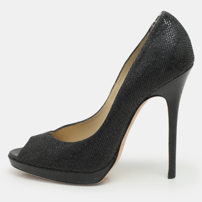 Radiate elegance with these stunning black glitter pumps. Meticulously crafted, these slip ons boast shimmering glitter fabric paired with leather.