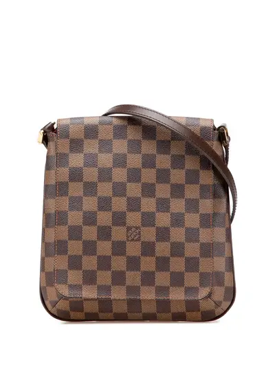 damier ebene canvas body adjustable flat shoulder strap flap with magnetic snap closure interior slip pocket brown Serial Number: LM1024 This item has no inclusions. Condition: GOOD. This previously owned and used item is in good condition with minimal signs of use. This may include fading of material or plating and scratches. Due to the exclusivity of this item and its limited availability, processing and delivery might take longer than usual. Please refer to the photos on this product page for a detailed view of the item, including any damages declared.