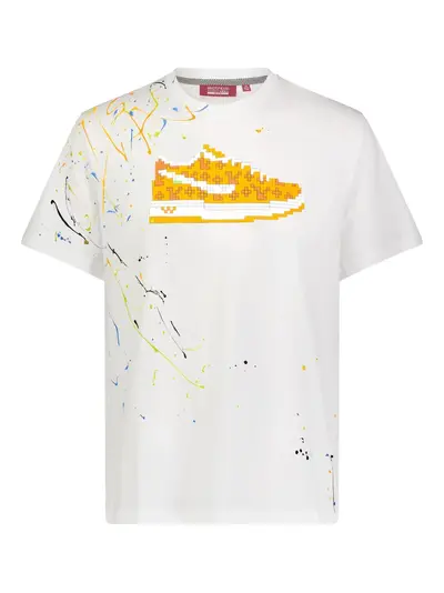 white 8-bit trainer graphic paint splatter pattern crew neck short sleeves