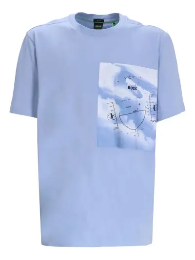 light blue graphic print on front crew neck short sleeves relaxed fit