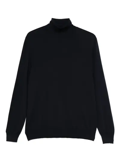 navy blue cashmere-silk blend turtleneck long sleeves ribbed cuffs ribbed hem