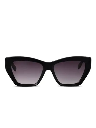 black cat-eye shape gradient lenses gold-tone logo logo lettering These glasses come with a protective case.