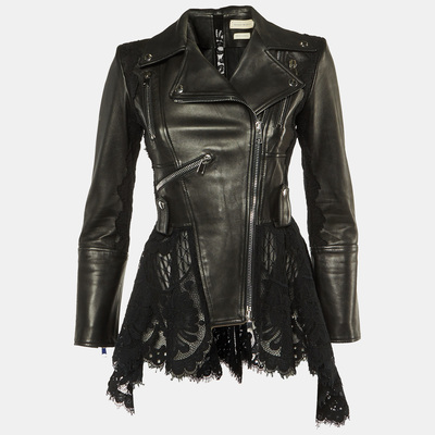 Alexander McQueen Black Leather & Lace Peplum Jacket S 1177266 - 1