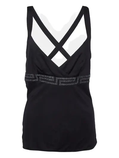 black rear criss-cross straps V-neck crystal embellished sleeveless Condition: GOOD. This previously owned and used item is in good condition with minimal signs of use. This may include fading of material or plating and scratches.