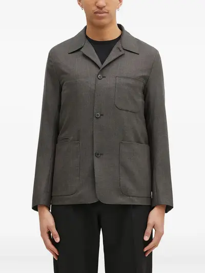 dark grey checked pattern four button fastening two patch pockets notched lapel long sleeves