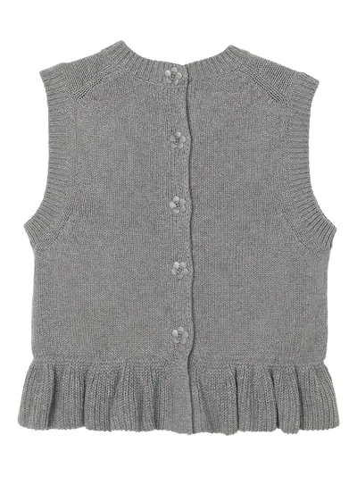 grey ruffled hem sleeveless round neck button fastening flower-shaped buttons