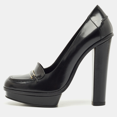 These loafer inspired pumps from Fendi fuse tradition with trend. Crafted in smooth black leather and set atop a chunky platform, they feature logo hardware for a modern, fashion forward finish.