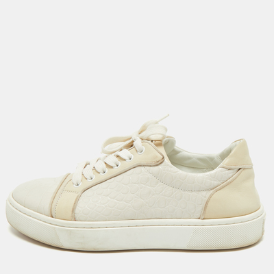 Christian Louboutin White/Cream Croc Embossed Leather Vieirissima Sneakers Size 40 1178360 (белый, lpn30294127)