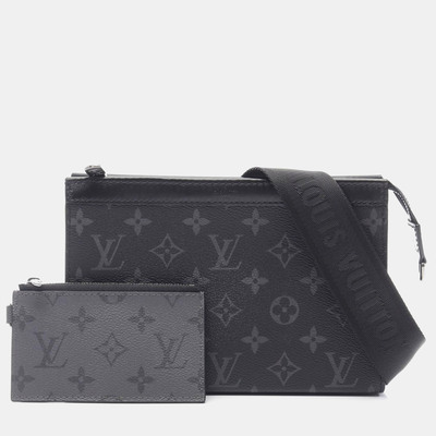 The Gaston Wearable Wallet by Louis Vuitton is crafted in black and gray Monogram Eclipse canvas with tonal leather accents and silver tone hardware. Compact and lightweight, this crossbody shoulder bag offers a sleek, hands free design that combines modern utility with iconic Louis Vuitton style.