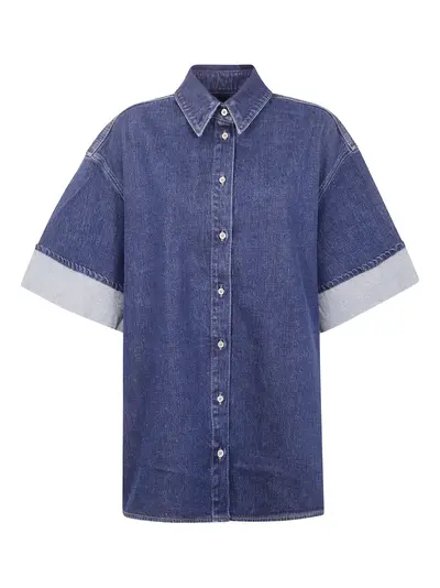 blue cotton button fastening short sleeves cuffed sleeves boxy shape