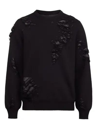 black textured distressed detailing crew neck long sleeves ribbed cuffs