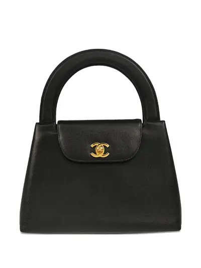 circa 1998 black caviar leather gold-tone hardware top handle flap closure interlocking CC logo Serial Number: 5215411. This item comes with an original authenticity seal. Condition: GOOD. This previously owned and used item is in good condition with minimal signs of use. This may include fading of material or plating and scratches.
