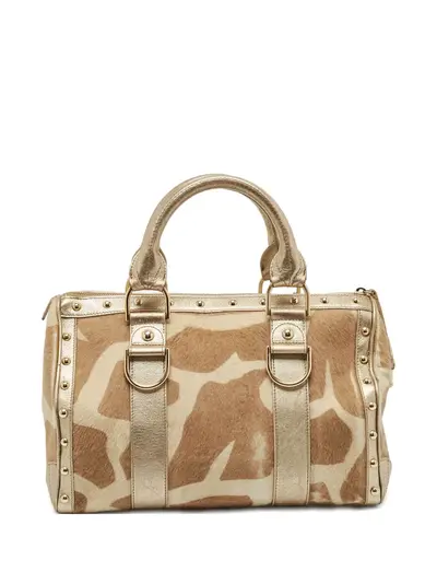 gold-tone calf hair abstract-pattern print metal studs front clasp closure logo plaque Condition: GOOD. This previously owned and used item is in good condition with minimal signs of use. This may include fading of material or plating and scratches.