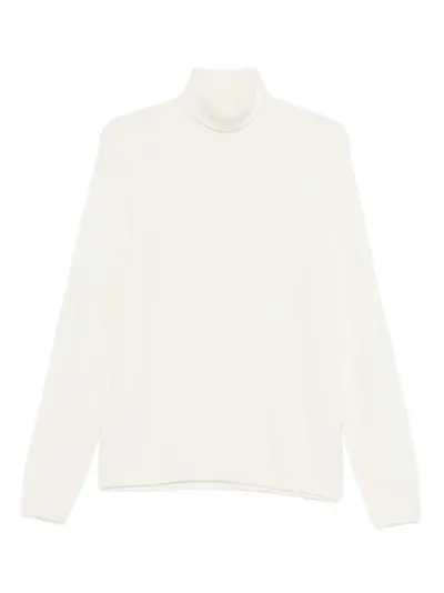 white turtleneck neckline long sleeves ribbed cuffs straight hem knit texture