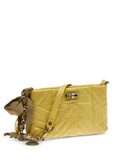 circa 2023 yellow quilted geometric pattern leather strap gold-tone chain detail bow detail Condition: GOOD. This previously owned and used item is in good condition with minimal signs of use. This may include fading of material or plating and scratches.