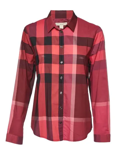 pink cotton check pattern front button fastening classic collar long sleeves buttoned cuffs Condition: GOOD. This previously owned and used item is in good condition with minimal signs of use. This may include fading of material or plating and scratches.
