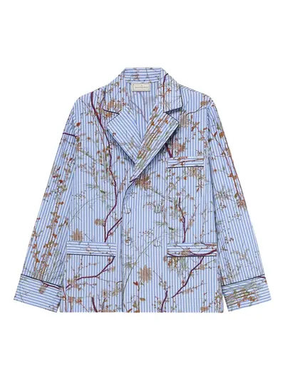 light blue vertical stripes floral pattern double-breasted piped trim welt pockets