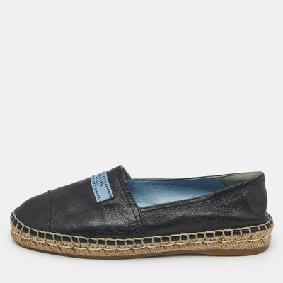 Prada Black Leather Bow Espadrille Flats Size 37.5 1178786 (чёрный, lpn30427014)