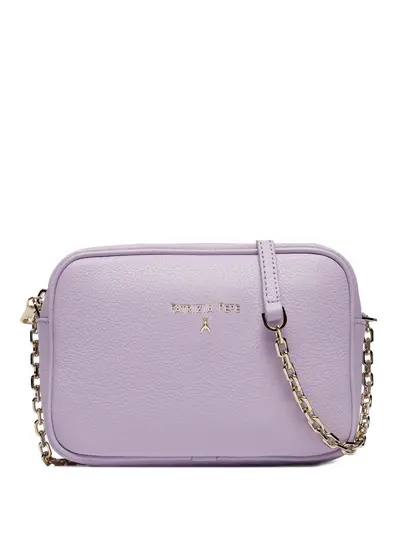 lilac textured leather gold-tone chain strap zip closure branding details