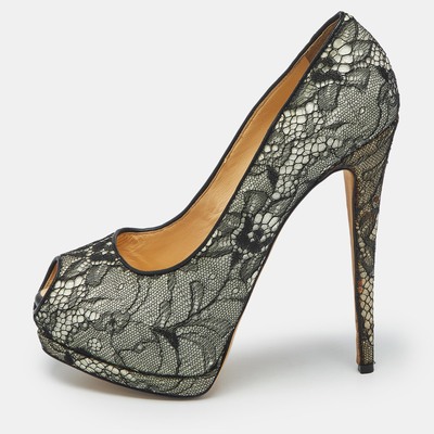 Delicate lace meets bold construction in these platform pumps from Giuseppe Zanotti. Featuring a peep toe and contrasting palette, they balance romance and edge in signature Italian fashion.