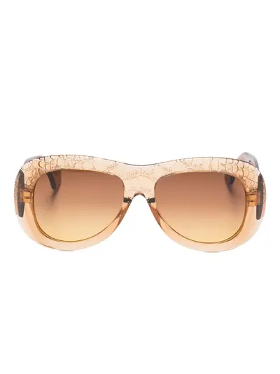 light brown geometric frame crocodile embossing tinted lenses These glasses come with a protective case.