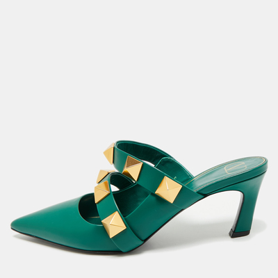 Valentino Dark Green Leather Roman Stud Pointed Toe Mules Size 39.5 1180897 (зелёный, lpn30518907)