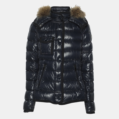 Moncler Navy Blue Quilted Armoise Fur Lined Hooded Down Jacket S 1180379 - 1 small