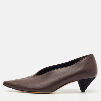 Understated but unforgettable, these V Neck pumps by Celine are crafted from rich plum leather with a sculptural cut and angular heel. With architectural elegance and minimalist lines, they’re a quiet statement in directional dressing.