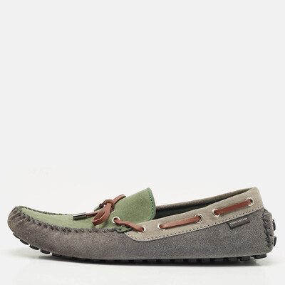 Louis Vuitton Dark Tricolor Suede And Leather Logo Bow Slip On Loafers Size 42.5 1180703 (lpn30549710)