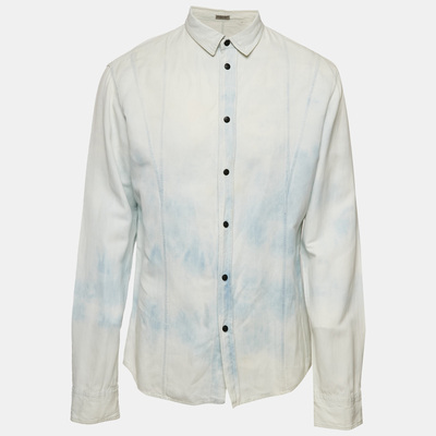 Bottega Veneta Light Blue Washed Effect Cotton Blend Button Front Shirt XL 1180444 (голубой, lpn30617899)