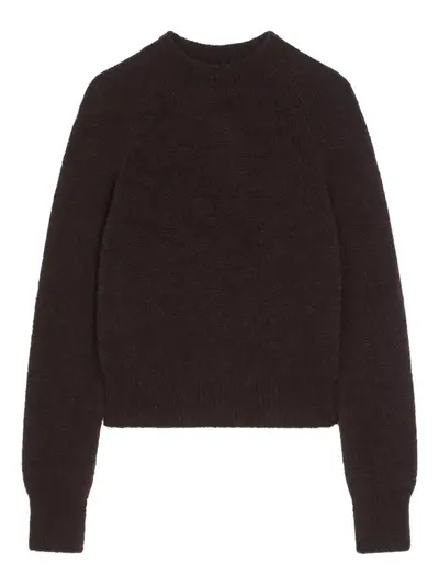 dark brown wool-blend ribbed cuffs round neck slightly dropped shoulders