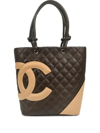 circa 2005 brown calfskin leather signature interlocking CC logo diamond quilting knotted top handles Serial Number: 9382016 Condition: GOOD. This previously owned and used item is in good condition with minimal signs of use. This may include fading of material or plating and scratches.