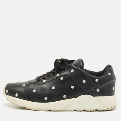 Dior Black Leather Polka Dot Low Top Sneakers Size 42 1182350 (чёрный, lpn30669301)