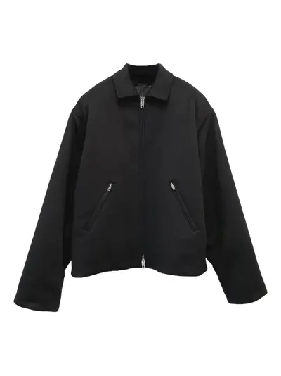 black front zip fastening two zip-fastening pockets long sleeves classic collar