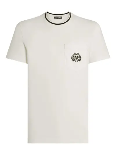 white embroidered logo short sleeves crew neck ribbed neckline cotton
