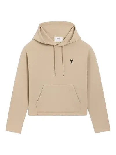 beige heart embroidery drawstring hood kangaroo pocket straight hem signature Ami De Coeur motif