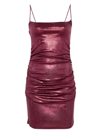 red metallic sheen thin straps gathered waist mini length