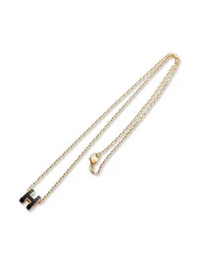 circa 2010s gold-tone black enamel H pendant mini size pendant lobster claw fastening polished finish engraved logo Condition: EXCELLENT. This previously owned item is in near-perfect condition with no signs of damage or use.