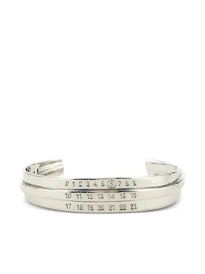 silver-tone adjustable opening numerical engraved open cuff