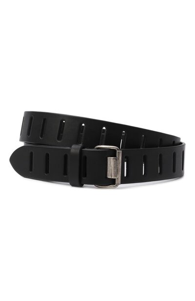Ремень Utility из мелкозернистой матовой кожи дополнили удлиненными отверстиями по всей длине. Аксессуар с неподвижной шлевкой застегивается пряжкой из искусственно состаренного металла.