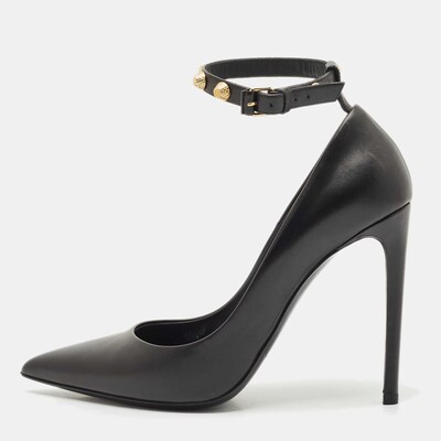 Balenciaga Black Leather Studded Ankle Strap Pumps Size 38.5 1184410 (чёрный, lpn30679541)