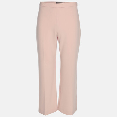 These Theory wide leg trousers in soft peach crepe offer a refined take on everyday tailoring. The fluid silhouette lends effortless elegance, while the color adds a modern update. Style them with a crisp blouse or tonal knit for a polished day to evening look.