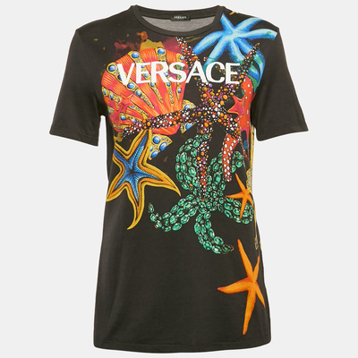 Versace Black Starfish Print Jersey Crew Neck T-Shirt S 1155151 - 1 small