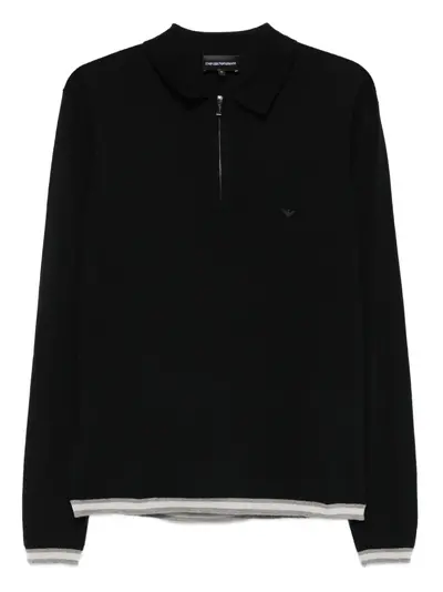 black half-zip fastening long sleeves ribbed cuffs and hem logo-detail